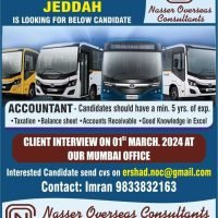 accountant jobs – required for a Transportation company in Saudi Arabia, Client interview in Mumbai on 1st March