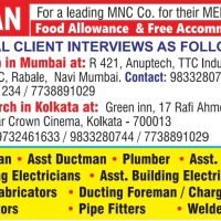 Oman jobs – required for a leading MNC Co. for their MEP Projects, client interview in Mumbai & Kolkata